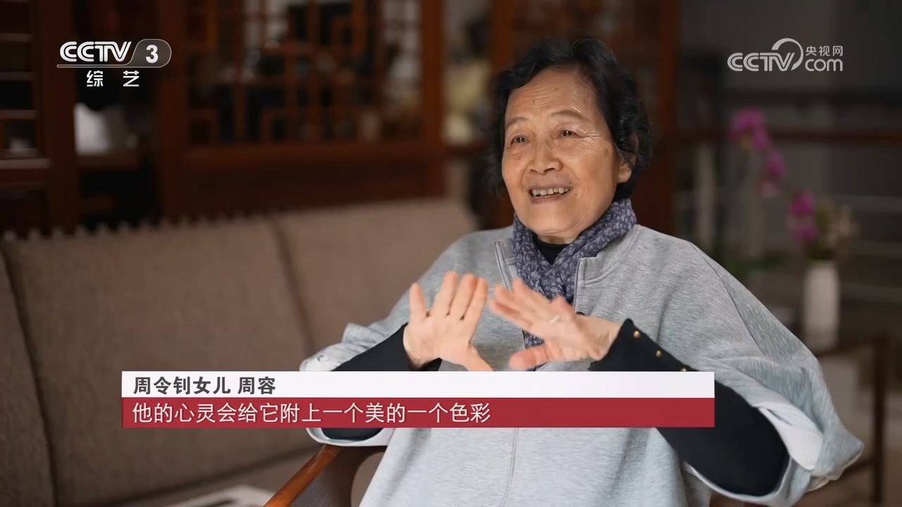 周令钊女儿 周容:他从小在这种动荡中长大,因此他就很希望是美好的、和谐的,所以他的画里边都是比较阳光的、和谐的、向往美好的,所以可能这些画能够起到美育的作用。他这方面美了,他对社会、关注别人,他的心灵会给它附上一个美的色彩。